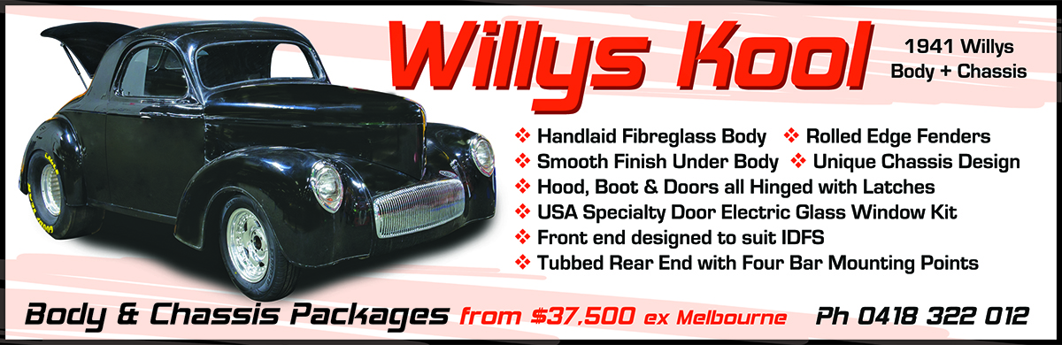 Making waves in the hot rod scene, Willys Cool offers high-quality fibreglass 1940/41 coupe body and chassis packages designed for builders who want style and performance. The chassis is carefully stepped to accommodate wide tyres and powerful engines, like the blown 392 Hemi featured in their display at this year’s Victorian Hot Rod Show (engine not included!). Each body comes fully equipped with hinged boot, hood, and doors, a smooth floor, and fast glass, making it ready for a professional finish or a custom build. Call Ian to find out more and get started on your own Willys build.
